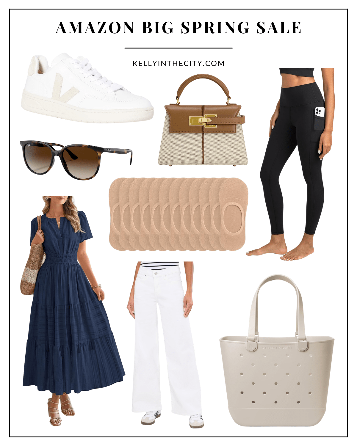 Veja V-12 Sneaker / JW PEI Elise Top Handle Bag / Colorfulkoala 7/8 Length Leggings / Ray-Ban RB4378 Sunglasses / Eedor No Show Socks / BTFBM Short Sleeve Maxi Dress / Levi’s 318 Shaping Wide Leg / Simple Modern Extra-Large Beach Bag