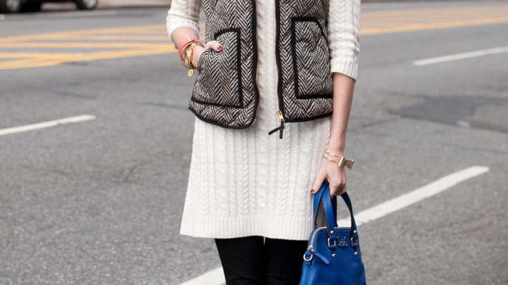 Chilly Fall Days in NYC: Sweater Dresses, Leggings, and Pops of Cobalt